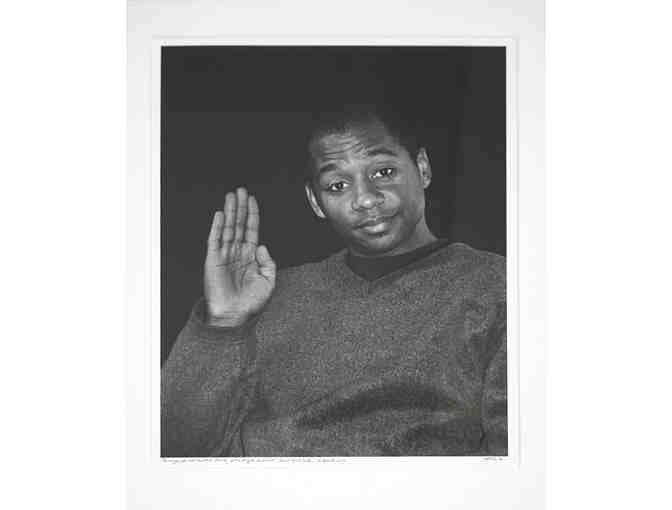 Hank O'Neal captures Branford Marsalis in New York City, April 12 2001, framed in black, matted in white. Approximately 16" x 20"