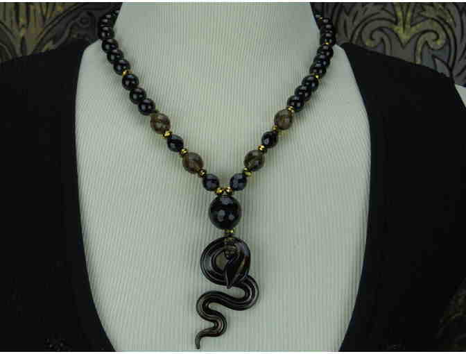 - FEATURES: BLACK SNAKE Glass Pendant, Smooth and Faceted Black Onyx