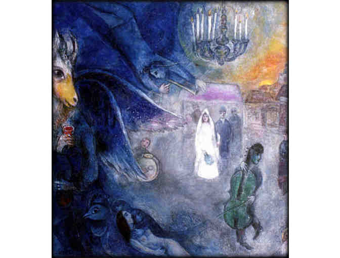 Marc Chagall was born Moishe Shagal on July 7, 1887, in Vitebsk, Russia, to a poor Jewish family that included ten children. His father, Zakhar Chagall, worked in a fish factory and his mother, Ida Chagall, worked in the family home and ran a grocery store. The years of his childhood, the family circle, and his native village became the main themes of his art. These first impressions lingered in his mind like original images and were transformed into paintings with such titles as the Candlestick with the Burning Lights, the Cow and Fish Playing the Violin, the Man Meditating on the Scriptures, the Fiddler on the Roof, and I and My Village. According to French poet and critic André Breton (1896¿1966), with Chagall "the metaphor [comparison of images] made its triumphant return into modern painting." And it has been said that Pablo Picasso (1881¿1973) was a triumph of the mind, but Chagall was the glory of the heart.