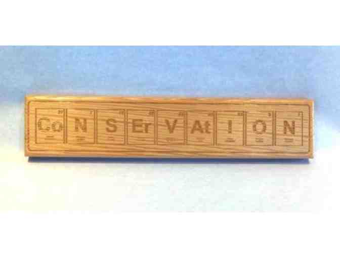Show your favorite CoNSErVAtION-ist you love science and them with a sign made from Sinker Pine salvaged from the Cape Fear River, laser etched, and coated in a water-based acrylic finish. Sign measures 13" x 2.7" and features the elements Cobalt, Nitrogen, Sulfur, Erbium, Vanadium, Astatine, Iodine, and Oxygen.