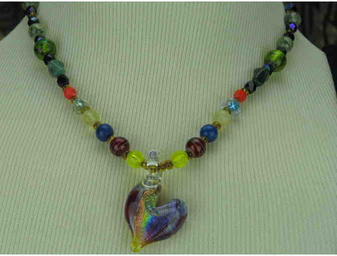 - FEATURES: Irridescent Art Glass Heart w/ Multi Gemstone Beads