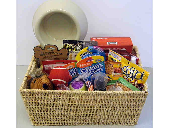 Spoil your favorite canine (or canine's) with this holiay basket filled with all kinds of treats they will wag their tail at and give lot's of doggie kisses for.