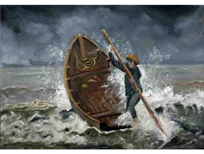 "Vietnamese Boatmen Fighting The Waves" by Artist Derek Rutt: 10x14" Canvas!
