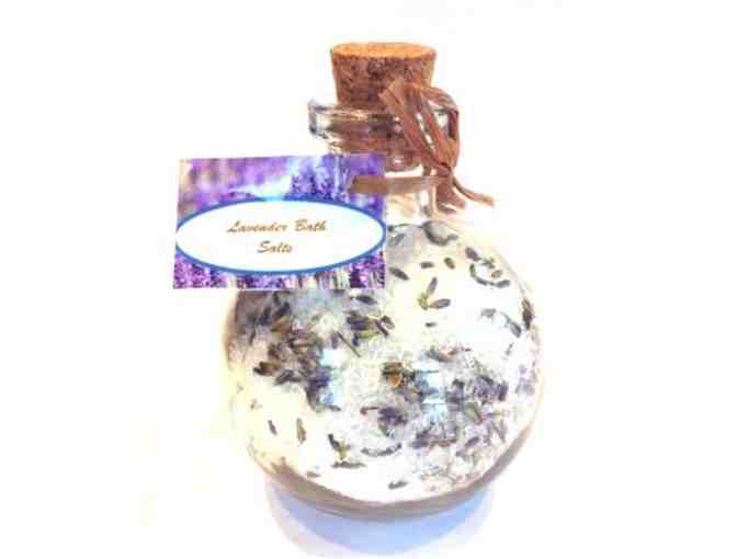 Relax with these homemade lavender bath salts. Salts made from premium grade epsom salts, premium grade Atlantic sea salt, lavender flowers, and lavender essential oils.