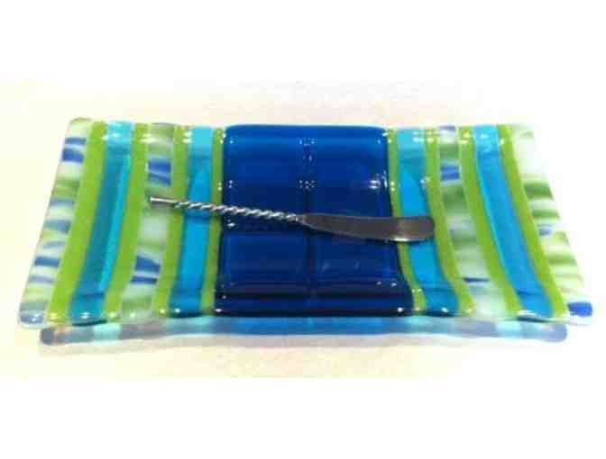 Glass Serving Tray (Blue and Green)