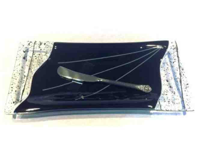Gorgeous 6" x 12" glass serving tray. Piece is cut and fused in a kiln. Black and clear glass with black flecks.