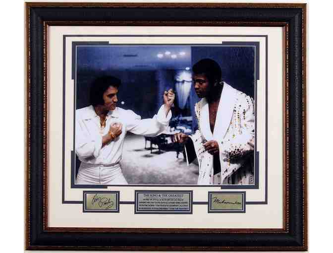 Capture a great moment in history when "The Champ" meets "The King". This photograph collage includes laser engraved signatures from both Ali and Elvis and a detailed nameplate. Item measures 26x26