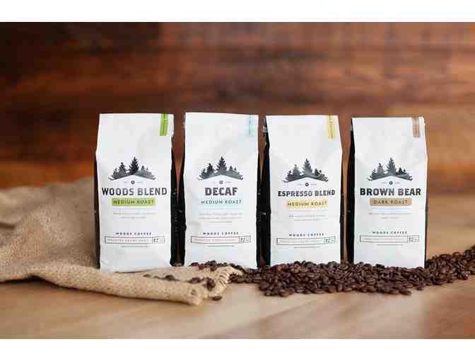 Up for bid are four bags of whole bean coffee, roasted and packed by The Woods Coffee.