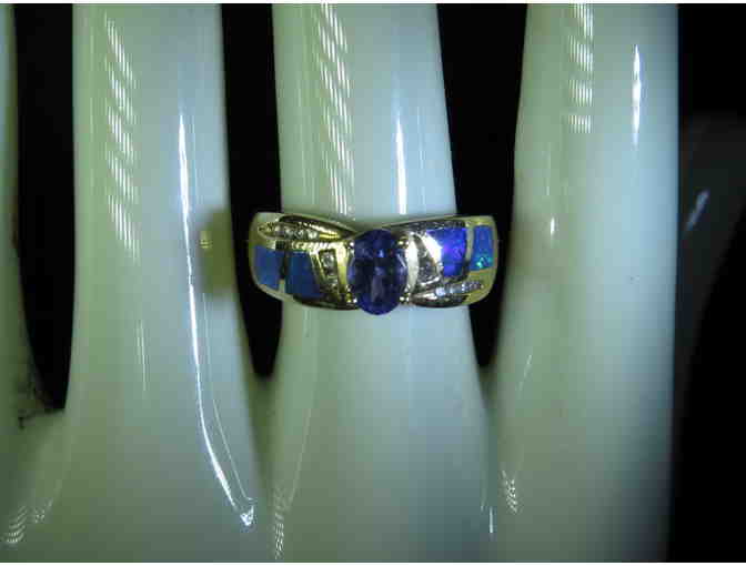 #12: VERY RARE AND EXOTIC AUSTRALIAN OPAL AND TANZANITE RING WITH DIAMONDS!