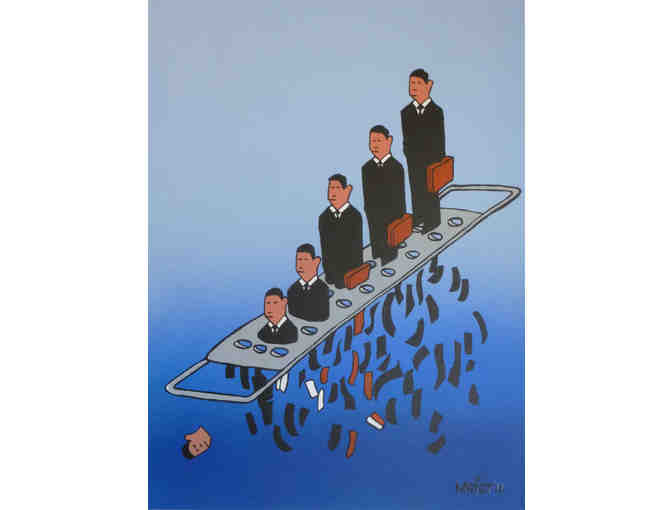 The winner will receive a 30"x40" acrylic on canvas Mike Martinet original painting titled Daily Grind.