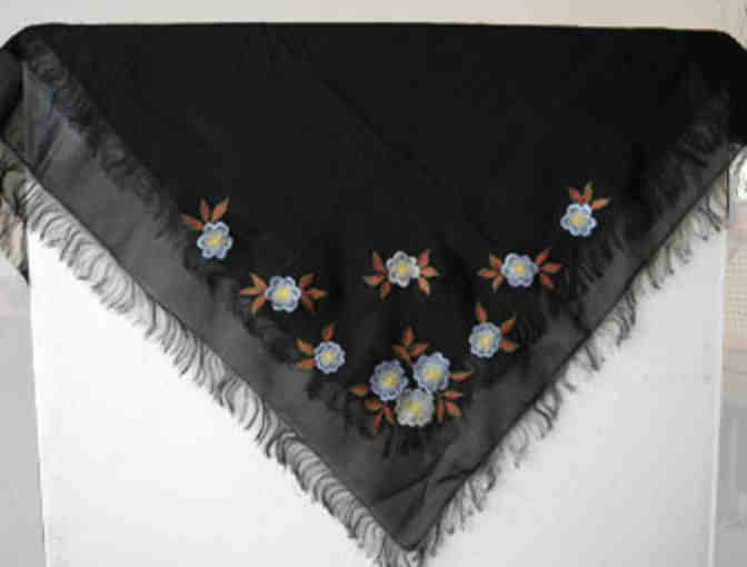 Black Shawl with Blue Flowers