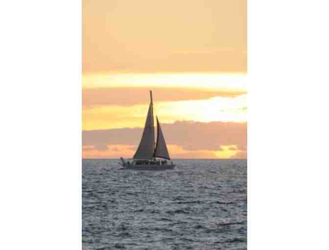 You and a guest will enjoy a beautiful Sunset Cruise on the modern power catamaran, Alala. Enjoy the warm tropical breezes and unparalleled views of the Big Island as you cruise the beautiful Kohala Coast.