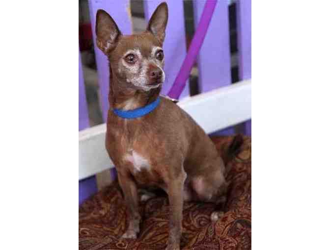 Brownie is a sweet little princess who is looking for a vacant lap or two. She adores humans who are kind and gentle with her and she will dance on her hind legs to ask for your attention; she also bestows quick little kisses once she knows you a bit. Rescued from the shelter in a state of neglect, Brownie has recovered from flea allergy dermatitis and her coat is now thick and shiny. She will need to be kept on flea preventative and also an inexpensive medication for her thyroid. House trained and crate trained, Brownie will be a lovely addition to a quiet, Chihuahua-loving home. Brownie can live with other dogs and cats too, but she really wants to be the center of attention and could be very happy as a spoiled "only child." Her age is estimated to be somewhere around 6-8 years. For more information about meeting or adopting Brownie, please fill out an online application.