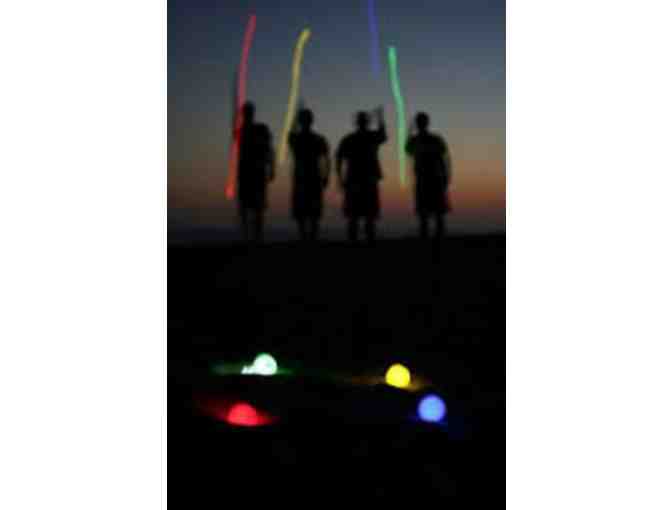 These Glo-Balls are an awesome thing to pull out when the sun goes down. People frequently stop and inquire as to where they can buy some. See more about Glo-Balls at playaboule or link to them through the Merchandise page on the Boccemon website. Colored high density "plastic" bocce balls with LED lights inside. These are awesome!
