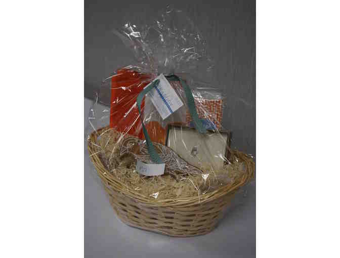 The winning bidder will enjoy a gift basket filled with specialty items from Peabody Papers, including Owl Portrait Note Cards (14 cards and 15 designer envelopes, 25 orange and white paper straws, Linda Geary Elevated journal (6.75 x 9.25 inches, 240 pages), Orange and Blue Two's Company Color Block Thermal Tote, Squirrel magnet, and bird shelf decor.