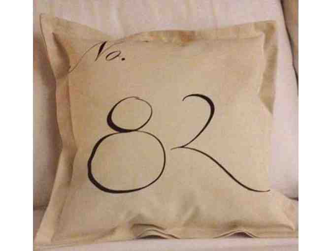 Ebba Etc. will confer with buyer to create their own unique accent pillow. Ideas include your house number or any special number to you. Pillow is made of natural colored cotton duck cloth, with hand stencil numbers. Size and shape of pillow will vary depending on the length of number.