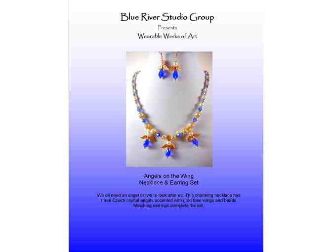 We all need an angel or two to look after us. This charming necklace has 3 Czech crystal angels accentd iwth gold tone wings and beads. Matching earrings complete the set.