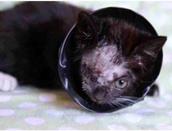 Shanti means peace, rest, tranquility or bliss, which is what we wish for this precious 5-week-old kitten who was found as a sick and injured stray. Sadly, her right eye was terribly infected and was grotesquely protruding from her eye socket. Her eye was too damaged to be saved, and needed to be surgically removed. Shanti is now recovering in foster care, and her incision is healing nicely. She will be available for adoption near Christmastime. Shanti's surgical expenses were $300.