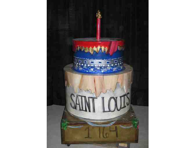 All Cakeway to the West Cakes have been on display to the public throughout 2014 and have been affected by the weather and interaction with the public. Each cake in the auction is offered "as is" and stl250 takes no responsibility for any repairs to the structure or decoration of the cake sculpture. Winning bidders agree to pick up the cake they have won from the location identified by stl250 no later than January 4, 2015.