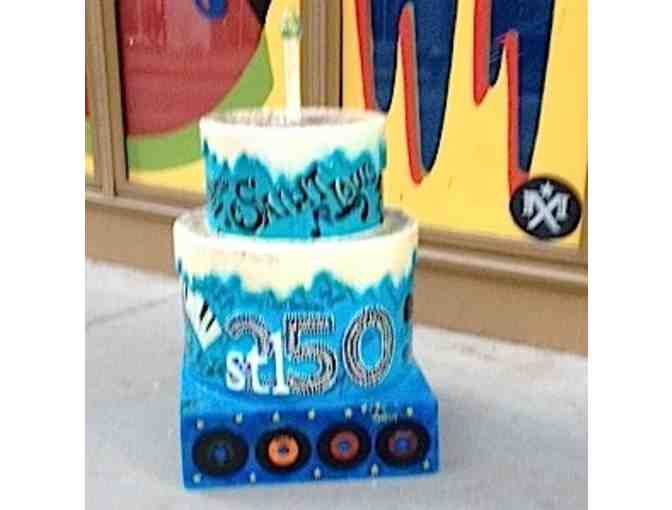 All Cakeway to the West Cakes have been on display to the public throughout 2014 and have been affected by the weather and interaction with the public. Each cake in the auction is offered "as is" and stl250 takes no responsibility for any repairs to the structure or decoration of the cake sculpture. Winning bidders agree to pick up the cake they have won from the location identified by stl250 no later than January 4, 2015.