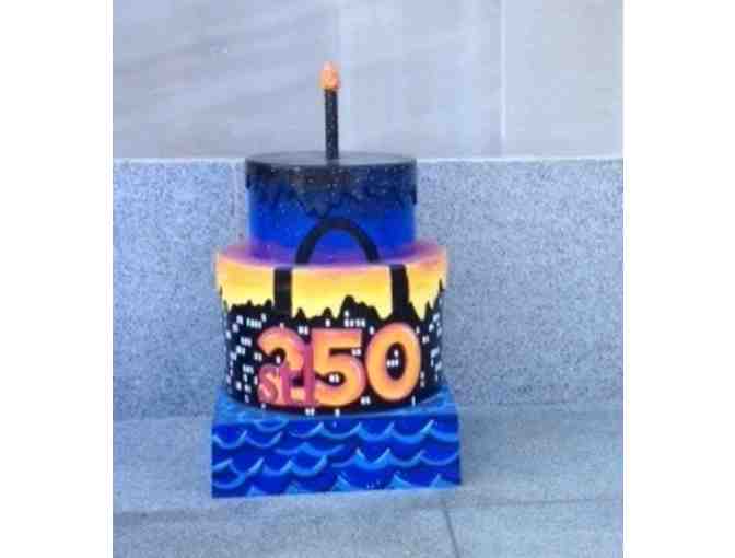 All Cakeway to the West Cakes have been on display to the public throughout 2014 and have been affected by the weather and interaction with the public. Each cake in the auction is offered "as is" and stl250 takes no responsibility for any repairs to the structure or decoration of the cake sculpture. Winning bidders agree to pick up the cake they have won from the location identified by stl250 no later than January 4, 2015.