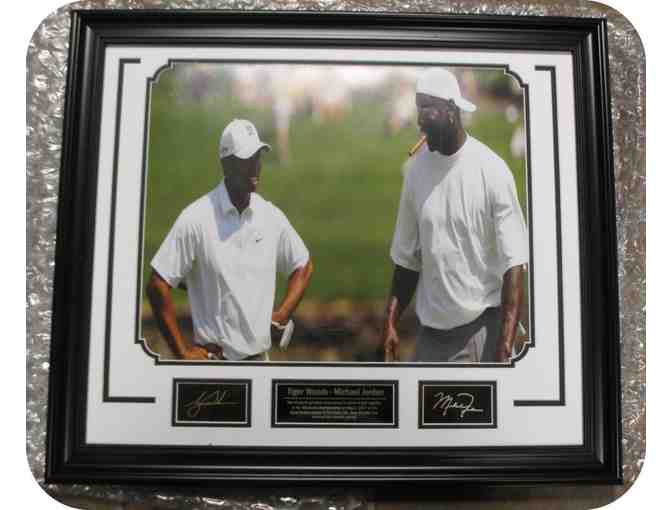 Tiger Woods & Michael Jordan framed photo with engraved autographs