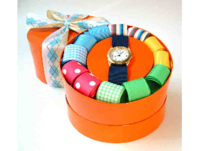 Perfect for every occasion--an adorable Timex watch with interchangeable grosgrain ribbon straps.