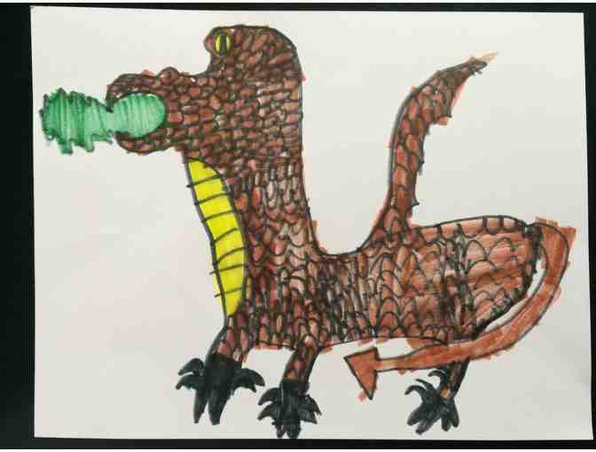 Third grader Will Schwendinger will offer his drawing services to teach one child how to draw dragons for 30 minutes. Donation to include one box of markers and one drawing pad.