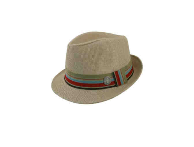 Tan fedora hat comes with removable nickel-plated MTV Movie Awards logo pin.