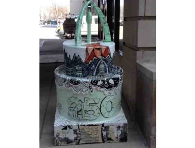 All Cakeway to the West Cakes have been on display to the public throughout 2014 and have been affected by the weather and interaction with the public. Each cake in the auction is offered "as is" and stl250 takes no responsibility for any repairs to the structure or decoration of the cake sculpture. Winning bidders agree to pick up the cake they have won from the location identified by stl250 no later than January 4, 2015.