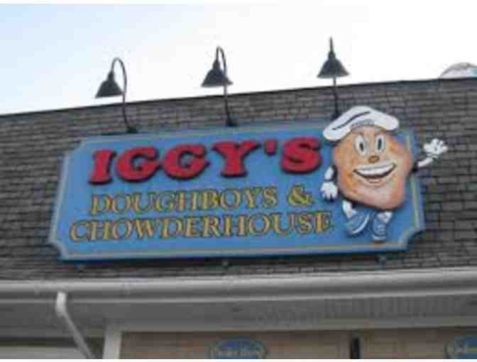 This gift basket from Iggy's is valued at $50 and includes an apron, two cans of Iggy's chopped clams, two bags of fritter clam cake mix, two bags of fish/chicken batter and is packaged in a mixing bowl!