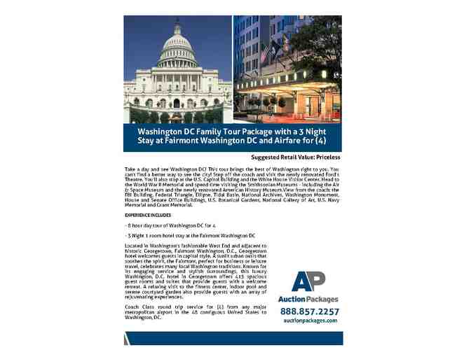 - 3 Night 1 room hotel stay at the Fairmont Washington DC