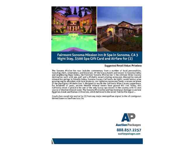 Your auction package redemption voucher will be emailed to you. Please allow 15 days for your redemption voucher to be
