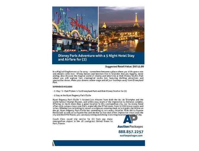 Your auction package redemption voucher will be emailed to you. Please allow 15 days for your redemption voucher to be