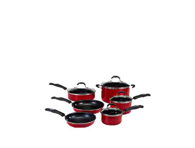 Features: * Pure aluminum cookware set with silicone handles * Riveted stick handles stay cool on the stove top * Tempered-glass covers with cool-touch handles * Oven safe up to 350 degrees Fahrenheit