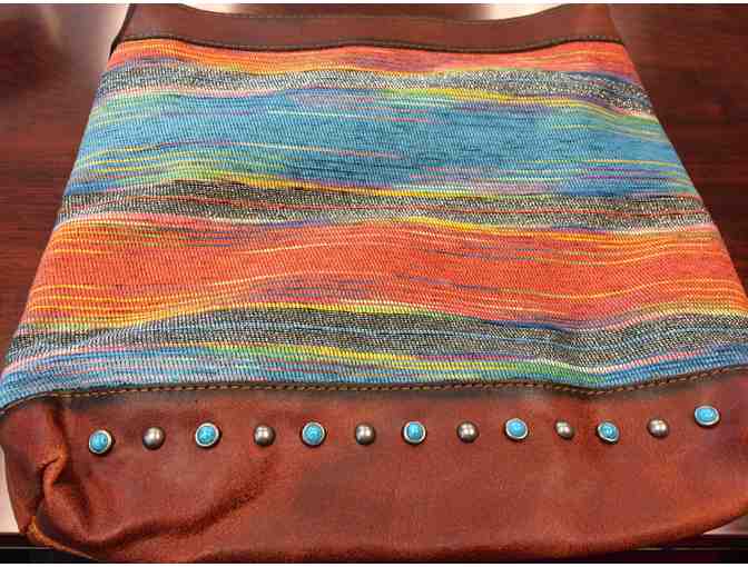 I Love Accessories — Blue & Orange Abstract Stud Crossbody Bag