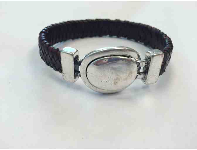 Pavcus Designs a?? Brown & Silver Braided Leather Buckle Bracelet