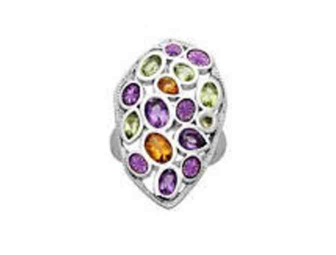 Sterling Silver Citrine Peridot and Amethyst Ring