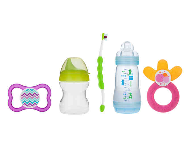 Assorted package of pacifiers, teethers, bottles and oral care items from MAM Baby.