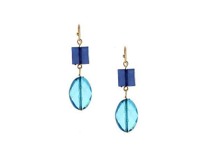 Sparkling Sage Blue Square & Oval Drop Earrings