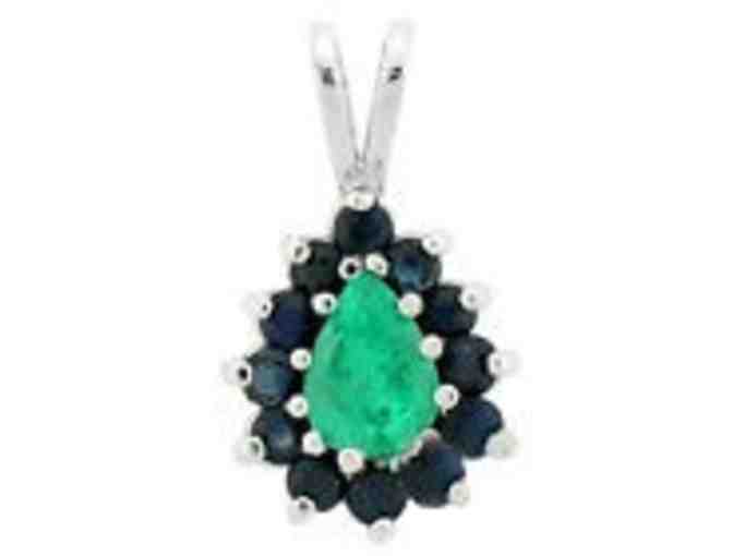 2.25ctw 14K White Gold Ladies Emerald and Sapphire Pendant w/ 14K Box Chain