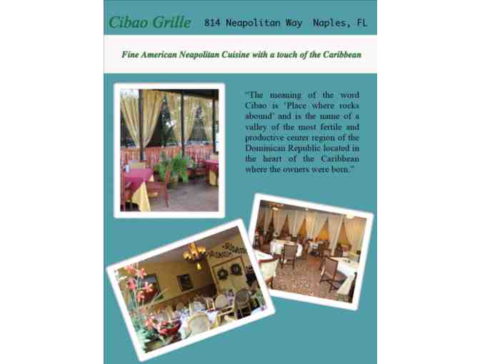 Donated by Cibao Grille, reservations suggested. View menu here.