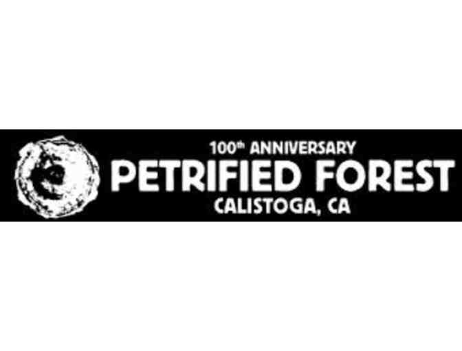 Free Admission for up to 4 Adults to the Petrified Forest in Calistoga. Step back in Time, over 3 million years, and follow the trail of majestic petrified redwood giants arrayed before you in a fascinating grove in beautiful California wine country. Come take a walk with family and friends and be a witness to redwood trees that once grew in abundance here and were turned to stone 3.4 million years ago by a local volcano.