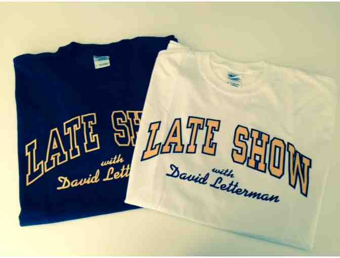 1 Medium white shirt and one Large navy blue shirt with Late Night with David Letterman Logo.