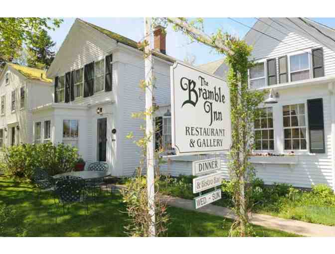 Donated by The Bramble Inn. Weekdays only, no Holidays. Not available July 15 through September 1. Dinner does not include alcohol or gratuity.
