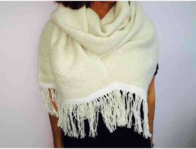 This one-of-a-kind, hand-loomed shawl was designed especially for Planned Parenthood of Collier County by Reverend Ron Patterson. Made with love, it consists of baby llama and sparkle, woven over a cotton/linen warp.
