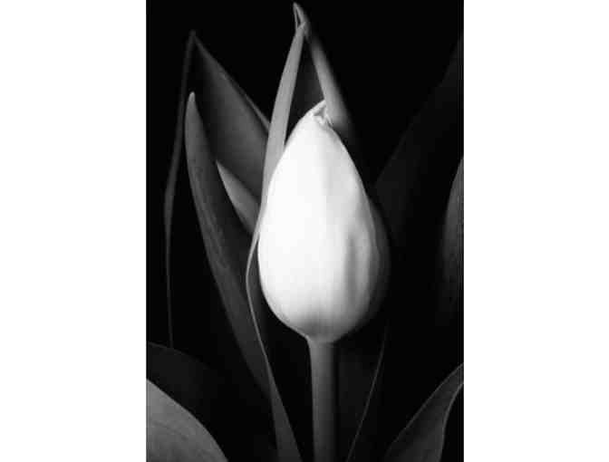 This striking tulip print, which conjures a sense of unfolding beauty and glorious potential, is by Eustace James, a Toronto area photographer. Unmatted and unframed, the print measures 10"x15".