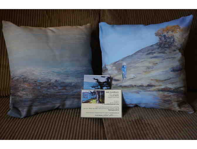 Relax in the tranquility of the sea with two (2) custom Terrill Welch pillows, and add to your collection with a 10% off savings coupon toward a Terrill Welch original painting. 10% savings is valued between $40 to $900.