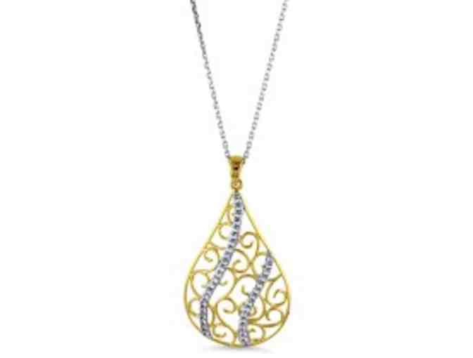 Sterling Silver 2-Tone Fancy Pendant with White Sapphires & 18" Chain