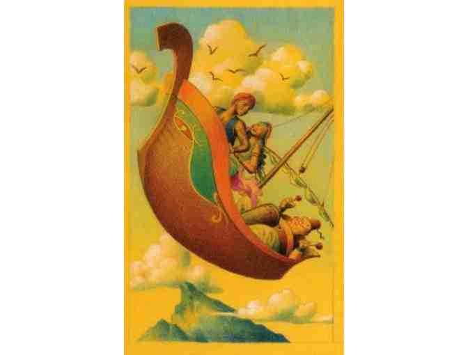 Sinbad the Sailor has retired from his notorious adventures. He tries to keep his feisty daughter, Ittifaq, safe from the sorceress, Jan Shah. But when a mysterious cloud descends upon Baghdad, putting all of the adults to sleep, proud Ittifaq must enlist the help of Sinbad the Porter, a street orphan whom she despises. A quest full of humor, genies, sword fights, diamonds, magic boats, and flying carpets ensues. The two young explorers cross the chasm of their differences to become fast friends and fellow adventurers for life.
